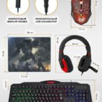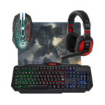 კომპლექტშია: მაუსი, კლავიატურა, მაუსპადი და ყურსასმენი.
